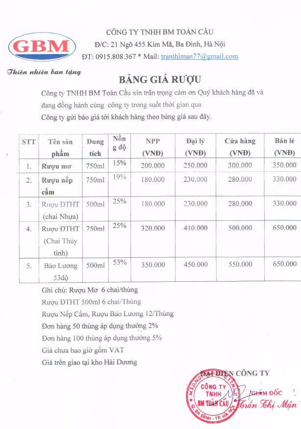 | Pháp nhân: | Công ty TNHH BM Toàn Cầu (GBM MAO ĐÀI) |