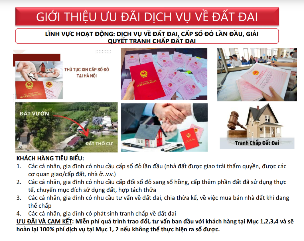 Miễn phí quá trình trao đổi, tư vấn ban đầu với khách hàng tại Mục 1,2,3,4 và sẽ hoàn lại 100% phí dịch vụ tại Mục 1, 2 nếu không thể thực hiện ra sổ được