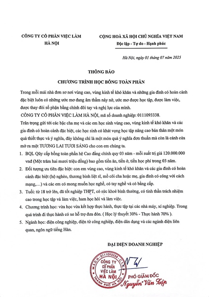 [Từ Hà Tĩnh trở ra] Đào tạo miễn phí tại Doanh nghiệp do Phụ nữ làm chủ hoặc có nhiều lao động nữ - Dành cho lĩnh vực SẢN XUẤT hoặc CHẾ BIẾN